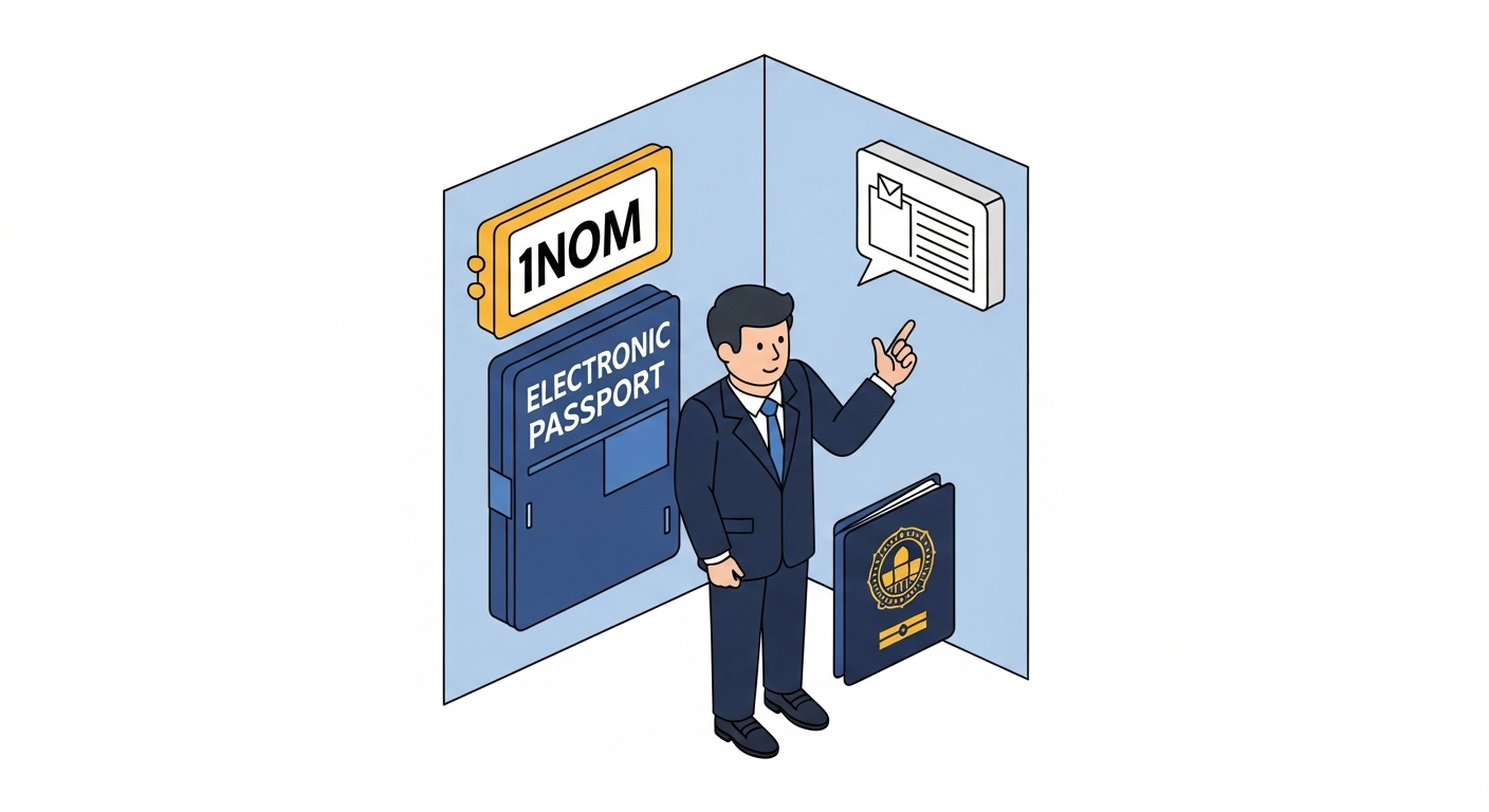 전자여권은 여권 안에 IC 칩이 내장된 형태의 여권으로, 여권 소지자의 **개인정보와 생체 정보(얼굴 인식 등)**가 칩에 저장되어 있습니다.
